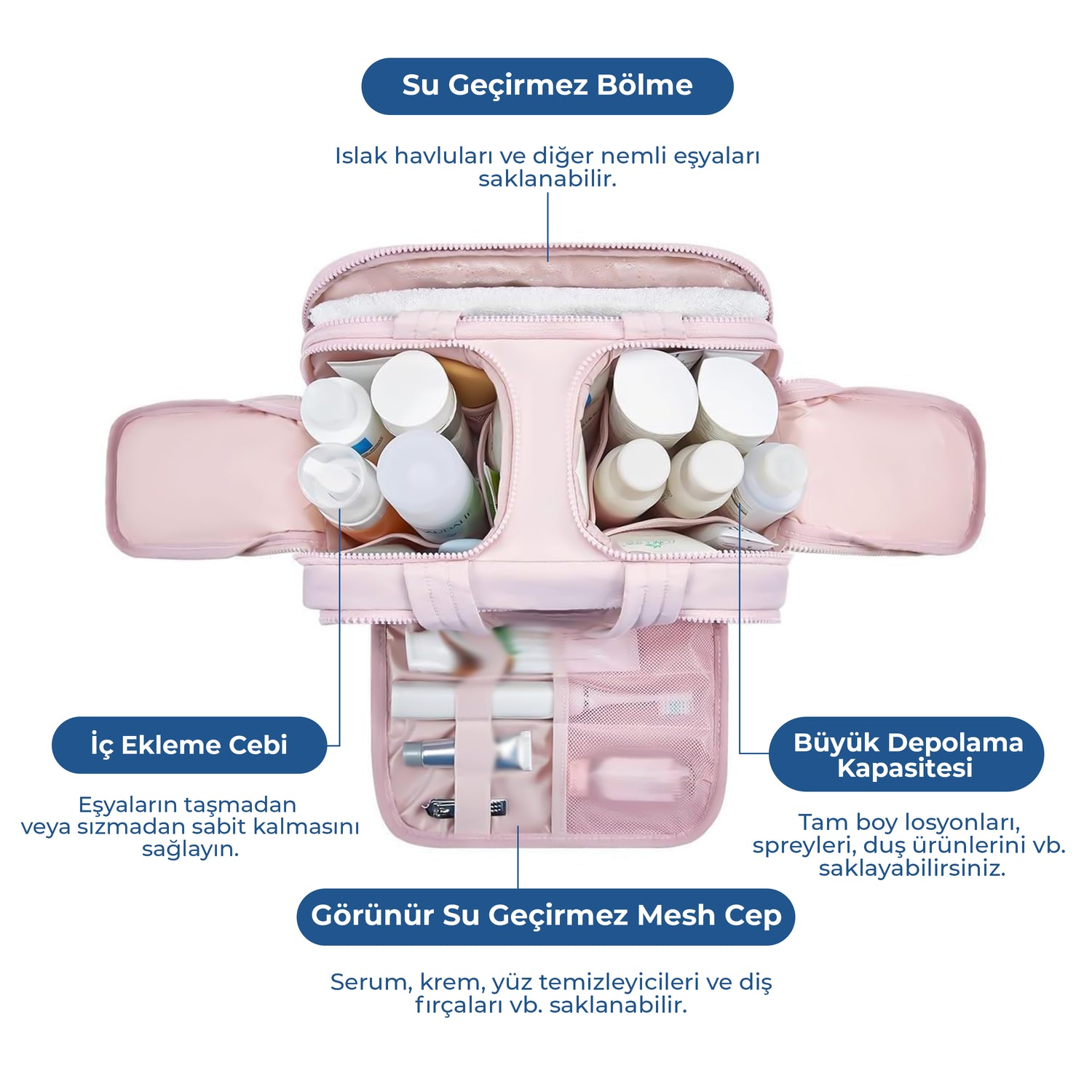 Sadece bir kozmetik çantası değil günlük düzen ve şıklık için tasarlanmış çok amaçlı bir seyahat yardımcısı.